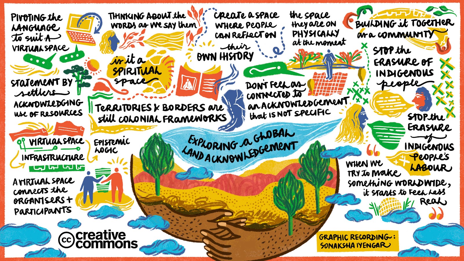 We also introduced a new session at the 2020 Summit, a global land acknowledgement, where we examined ideas of colonialism, power dynamics, and our own biases as we remixed a version for use in a virtual setting. The end result is a unique visual interpretation of those conversations by artist Sonaksha Iyengar (above). Â